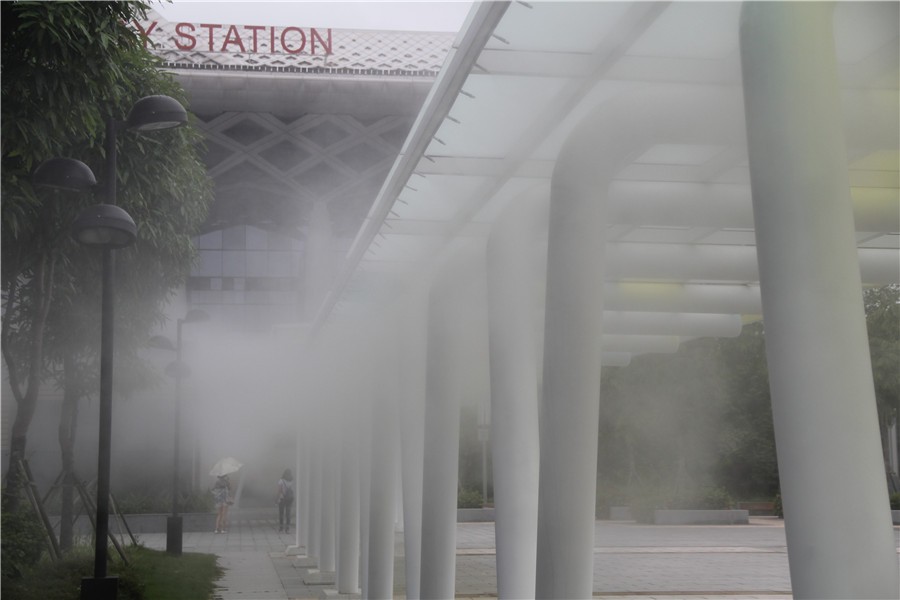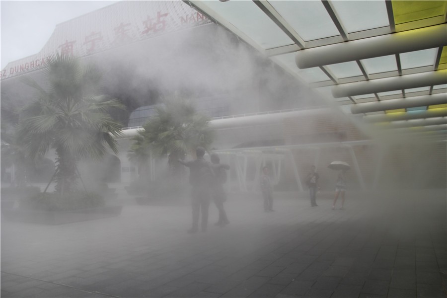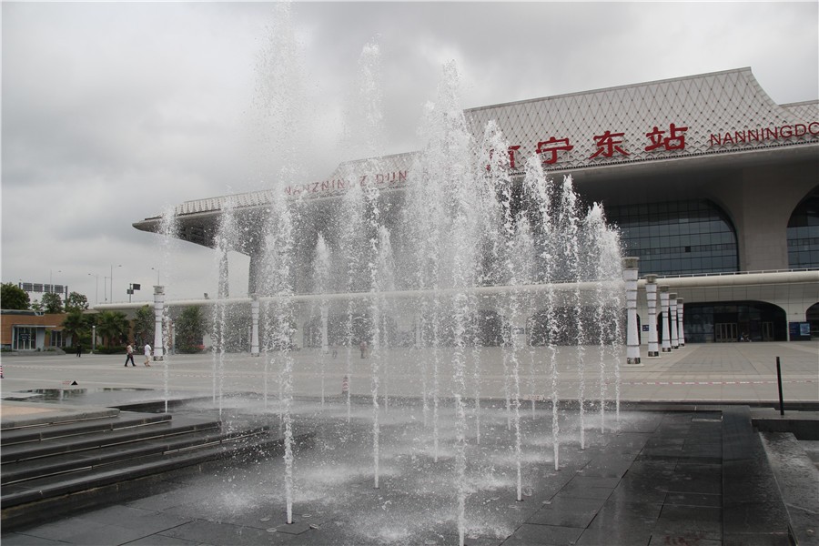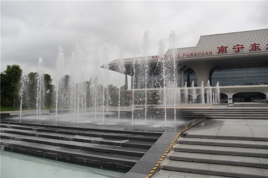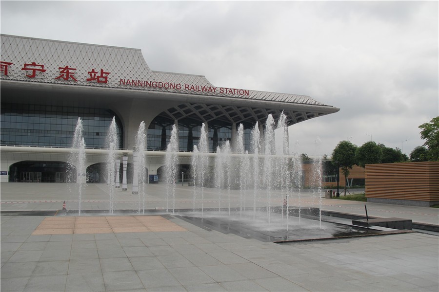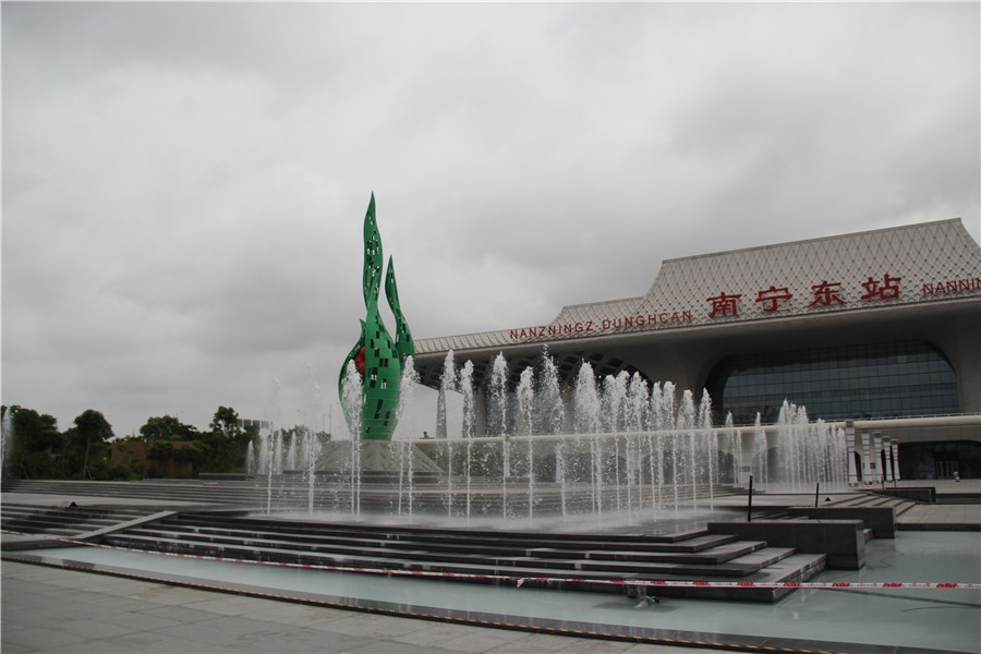 南寧軌道交通集團有限公司南寧東站綜合交通樞紐二期工程(地面南、北廣場)-噴泉及水處理工程:南寧火車東站位于南寧市鳳嶺新區(qū)東北部,分為南北廣場兩區(qū)域,北廣場景觀以“壯鄉(xiāng)客廳”為主題,雕塑以體現(xiàn)民族風情為主,南廣場景觀以“綠城窗口”為主題,雕塑體現(xiàn)“山水綠城”的特點,加上噴泉水景,動靜結(jié)合,給人們美的享受。