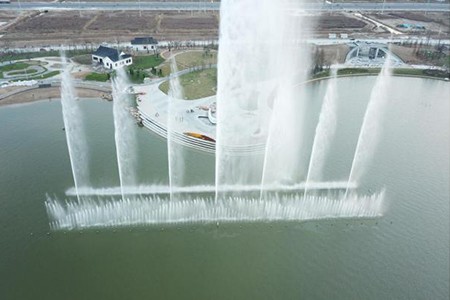 千鶴湖大型音樂噴泉工程設(shè)計、施工一體化工程:噴泉設(shè)計13組水型,960只噴頭,1600多盞彩燈,有20多首音樂編程,高噴可達(dá)80多米,次噴可達(dá)60多米。歡快的音樂噴泉以及七彩的燈光,不知不覺熟練而又迷人的“跳起舞來”,形態(tài)各異,給人們多角度高品質(zhì)的聽視覺盛宴。
