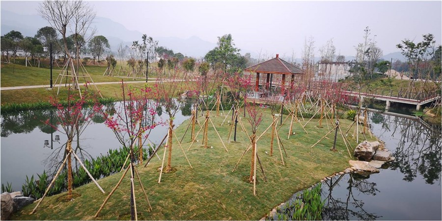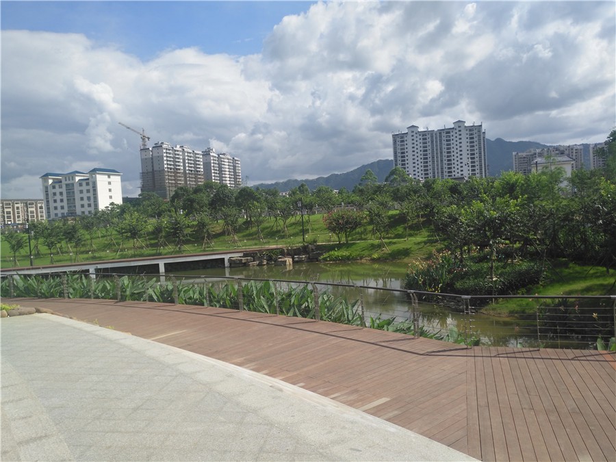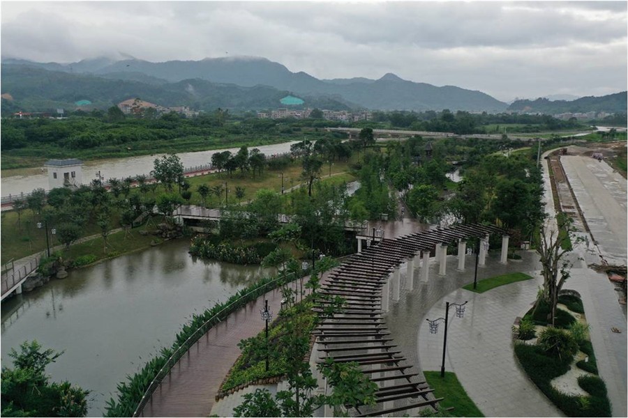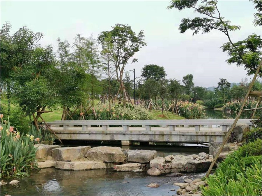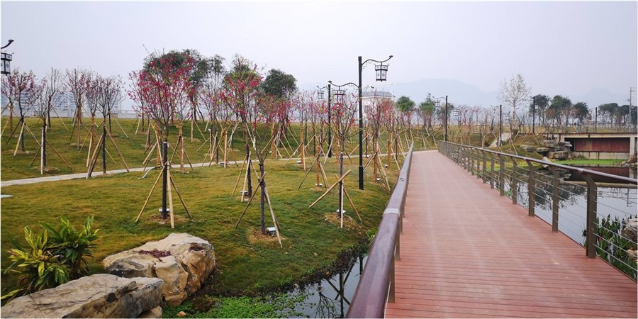 蒙山縣縣城段湄江河南北延長線綜合整治工程項目第一期生態(tài)恢復工程(北段):項目位于梧州市蒙山縣洲頭橋以北700米。亭臺棧道幽雅別致,綠草如茵,花木滿地,提升了縣城城區(qū)綠化、美化亮化,打造出一片藍天碧水,成為宜居宜業(yè)宜游的特色縣城。