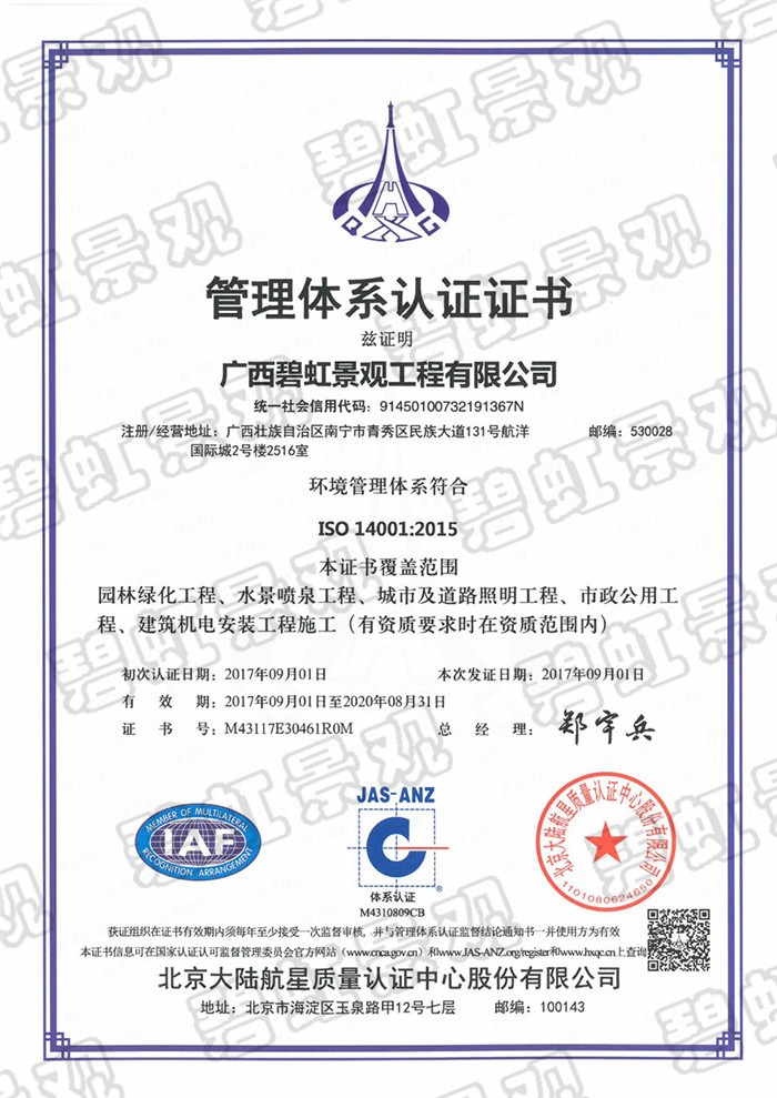 環(huán)境管理體系認(rèn)證證書