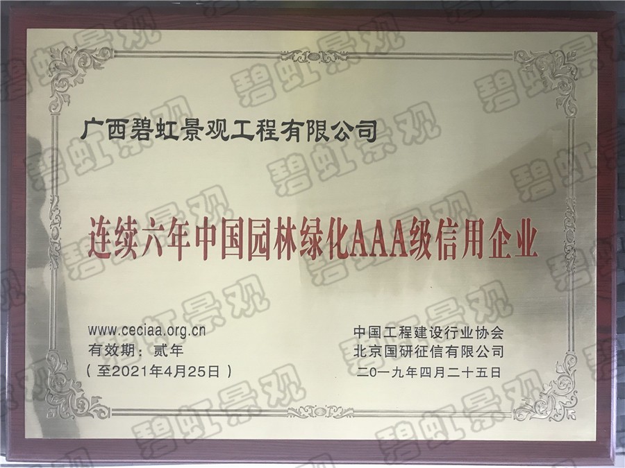連續(xù)六年中國(guó)園林綠化AAA級(jí)信用企業(yè)